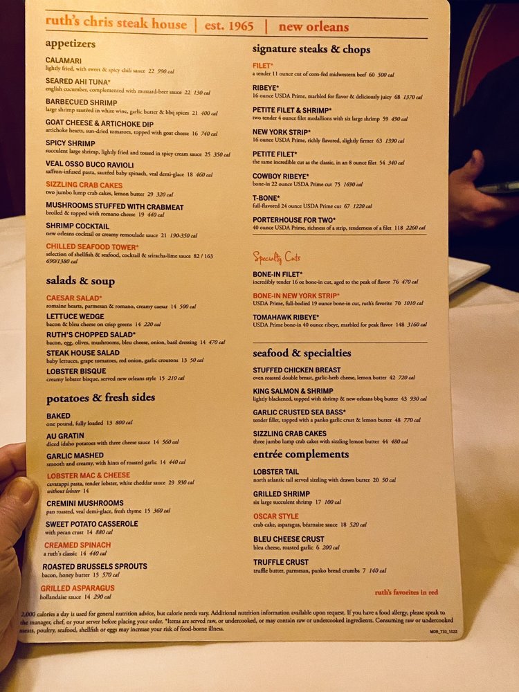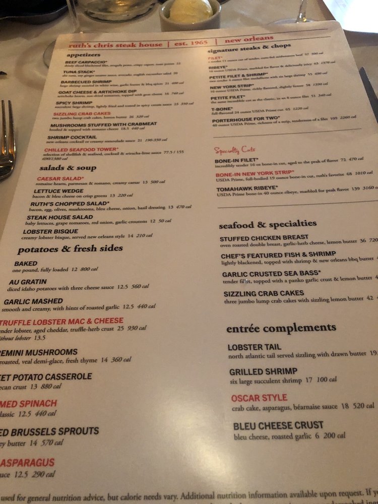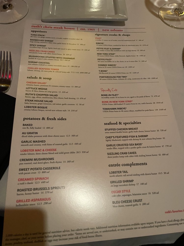 Ruth's Chris Steak House Roseville Menu (Update 2025)